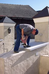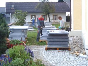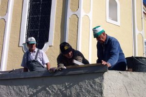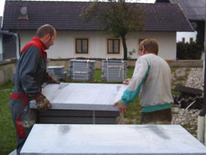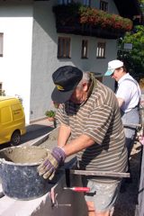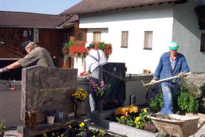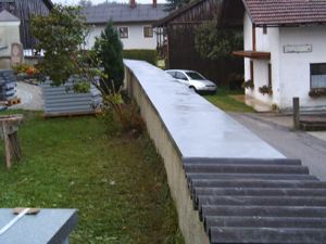 Sanierung der Friedhofmauer Lang wurde diskutiert und verhandelt - nun ist es endlich so weit. Über die Initiative unseres Bürgermeisters Franz Harner ist es gelungen, dass uns das Land Oberösterreich, die für die Abdeckung unserer Friedhofmauer notwendigen Granitplatten zur Verfügung stellt. Die schon einige Jahrzehnte alten und nicht mehr entsprechenden Welleternitplatten werden nun entfernt und gegen Granit-Natursteinplatten aus dem Mühlviertel ausgetauscht. Eine schwierige und zeitaufwendige Arbeit, die hier unter der Leitung unseres Spezialisten Hans Daxecker durchgeführt werden muß. Aber, und darüber sind sich alle, auch die ursprünglichen Kritiker einig - schön ist es doch und vor allem dauerhaft.