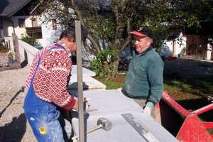 der Friedhofmauer - Neue Granitabdeckung 2. Teil
