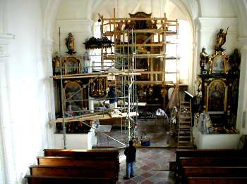 das Äußere des Gotteshauses und der Turm neu verputzt. Seit 1998 laufen